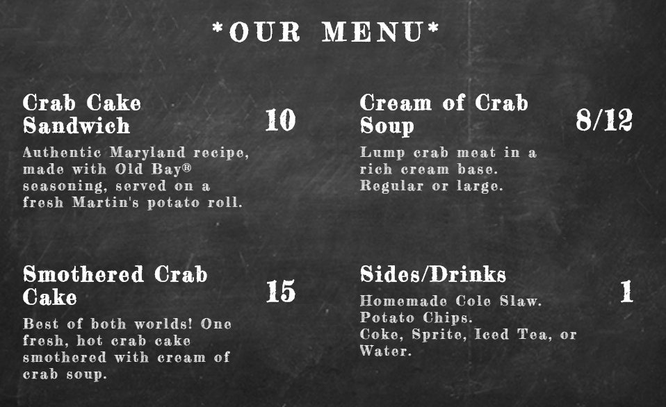 Menu Ocean City Md Crabs Crab Alley Md Crab Houses Seafood Markets